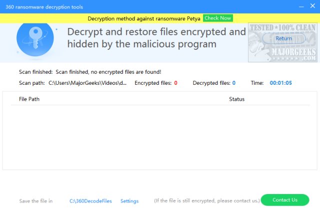 360 Ransomware Decryption Tool can help decrypt files that have been locked for free. Currently, it can decrypt over 80 types of ransomware, including WannaCry and Petya.