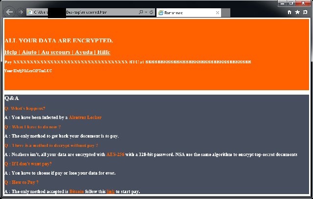 Avast Decryption Tool for Alcatraz Locker can remove the Alcatraz Locker ransomware, which uses AES 256 encryption combined with Base64 encoding. All the Avast Decryption Tools are available in one zip here.