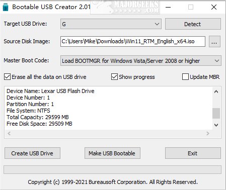 Loading an OS can be a lengthy procedure, and compared to other tools, Bootable USB Drive is pretty fast. Also, if you encounter a corrupted MBR (Master Boot Record) in the first sector of a USB drive, Bootable USB Drive can quickly fix it. This option requires you to enable the Update MBR option.