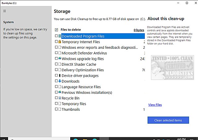 As expected, Burnbytes looks and feels like Storage Sense. You can check individual items and either view or delete anything you select.