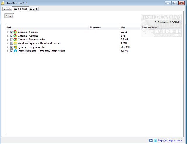 Clean Disk Free enables quick cleanup of temp files, internet history, passwords saved by browsers, and more.
