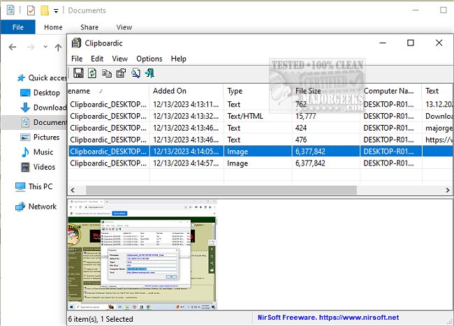 Once Clipboardic is up and running, its main window will display a list of available clipboard files. Every time you copy something to the clipboard, a new item will be added to the list. If you run Clipboardic on multiple computers, you can see the clipboard files of all other computers and identify the file owner by looking in the 'Computer Name' column.