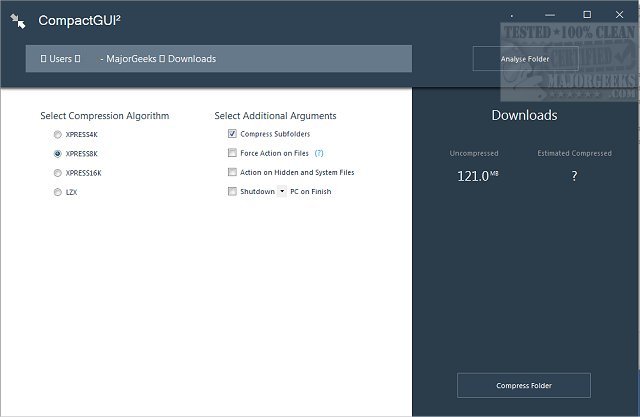 CompactGUI enables a graphical interface for the Windows 10/11 Command Line tool compact.exe, allowing space-saving file compression.