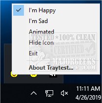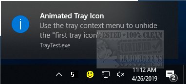 CTrayNotifyIcon is a free MFC/WTL (Microsoft Foundation Class/Windows Template Library) class app for creating and testing tray icon functionality.