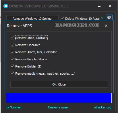 Destroy Windows 10 Spying is a portable app that can block anonymous data being sent, remove apps and more. Video tutorial available.