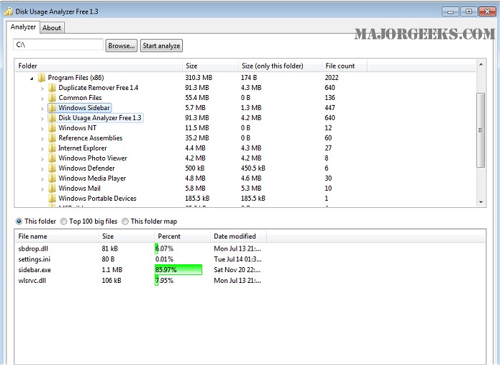 This program is very easy-to-use, select the folder or drive to analyze, and then click 'Start Analyze' to start the disk usage analysis. It will enable you to make informed decisions regarding large space-occupying files that may need to be moved or deleted entirely.