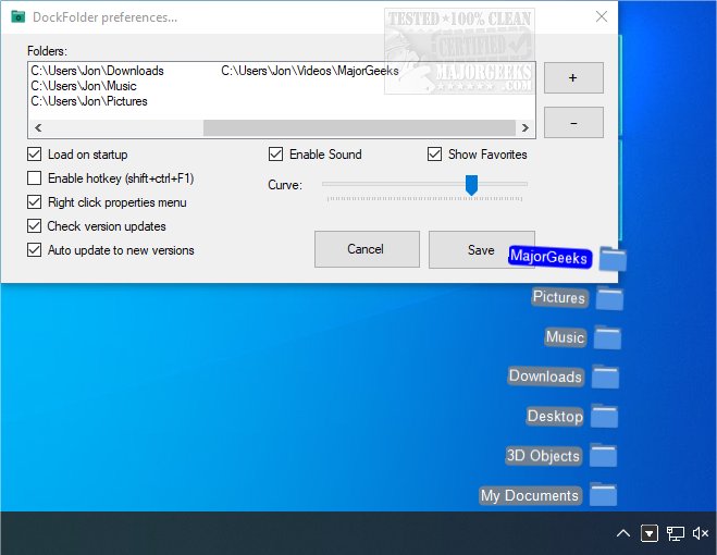 It is designed to be simple to configure and remains in the systray until needed. You can access the settings via a right-click on the systray icon. You can add your selections there and manipulate the display by curving the file tree, enabling sound, showing favorites, and loading on startup, among several other options.