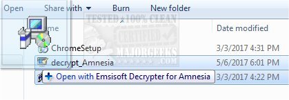Emsisoft Decrypter for Amnesia will help decrypt files encrypted by the Amnesia 1 and 2 ransomware.