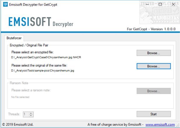 Emsisoft Decrypter for GetCrypt is designed for releasing files encrypted by the GetCrypt ransomware, so you do not have to pay the ransom.