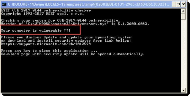 EternalBlue Vulnerability Checker can check whether your computer is patched against EternalBlue, the exploit behind the WannaCry ransomware.