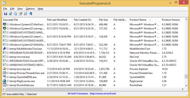 For every program, ExecutedProgramsList displays the .exe file, the created/modified time of the .exe file, and the current version information of the program (product name, product version, company name) if it's available. For some of the programs, the last time execution time of the program is also displayed.