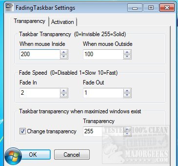 FadingTaskbar gives you the ability to manage your taskbar's transparency level.