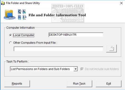 Provide a Folder Name. This Task will generate a report detailing the "Permission" set on the Parent Folder and all its sub-folders. Admins can use this for local as well as remote computers.