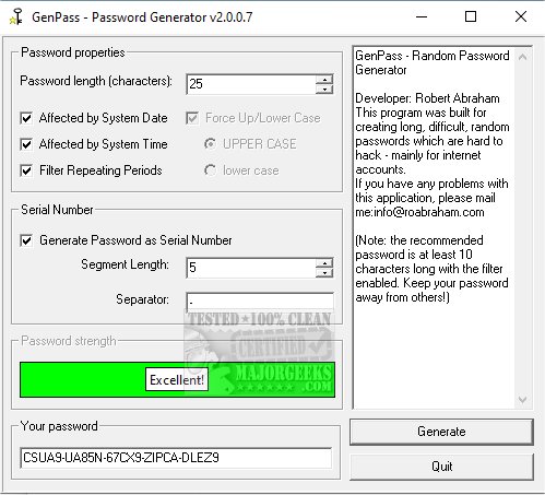 Additionally, GenPass - Password Generator offers the capability to generate unique serial numbers that can be used for your own applications, providing an extra layer of security.