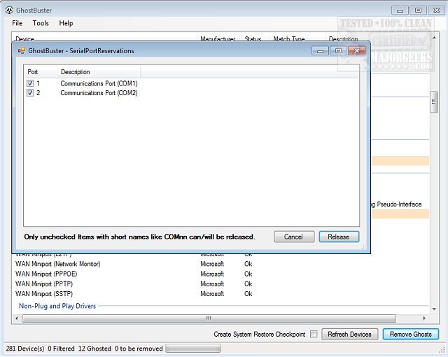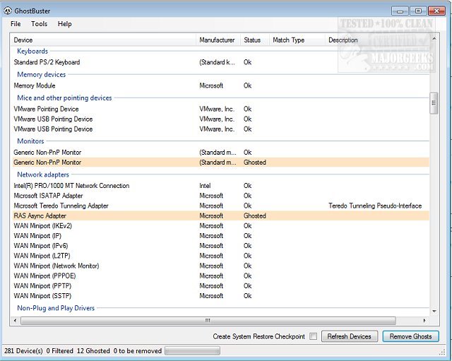 GhostBuster scans your registry for ghosted devices (hardware no longer connected to the PC) and then removes them with a single mouse click.