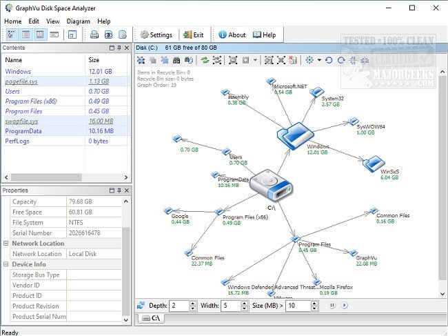 GraphVu Disk Space Analyzer enables you to manage your disk space through a graphical, hierarchical folder display.
