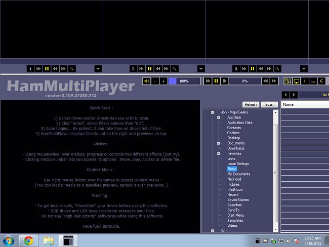 HamMultiPlayer is a portable audio/video software created to scan your directories (and/or drives) to find and display several multimedia files in real-time.