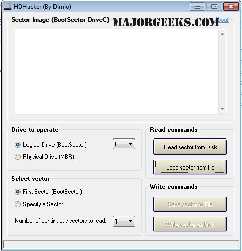 HDHacker can save, visualize, and restore the MBR, the boot sector, or any specified sector from any disk, including removable disks.