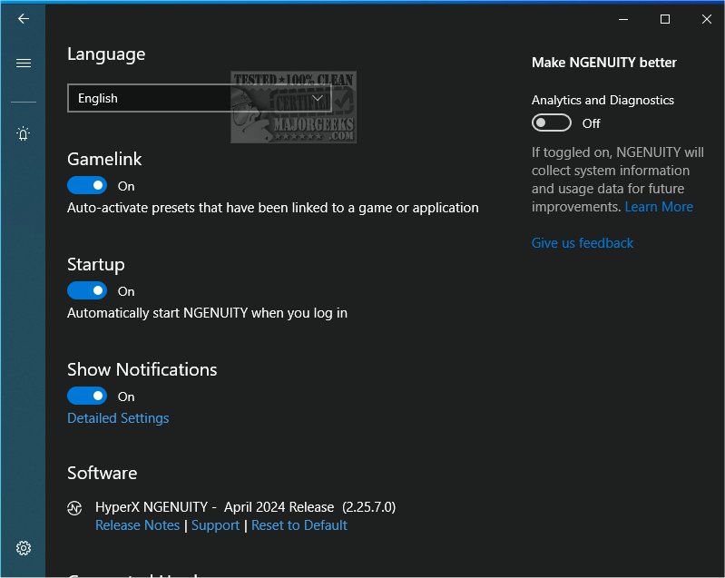 To set up HyperX NGENUITY on your Windows PC, download the installer (MajorGeeks download) or visit the Microsoft Store for a direct installation. Once you have installed the software, launch the application to initiate the setup process. The dashboard will automatically conduct a diagnostic scan to identify any HyperX products connected to your computer. During this scan, the software will search for various HyperX accessories, such as keyboards, mice, headsets, and other peripherals. As each product is detected, it will appear in a list on the far-left side of the screen. You can click on any item in this list to access specific settings and customization options for that accessory, allowing you to tailor your experience according to your preferences. With HyperX NGENUITY, you can manage device lighting, create custom macros, and configure other features to enhance gaming and productivity.