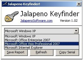 Jalapeno Keyfinder is a simple utility to retrieve and decrypt your Microsoft serial keys. It also includes support for several non-Microsoft software titles.