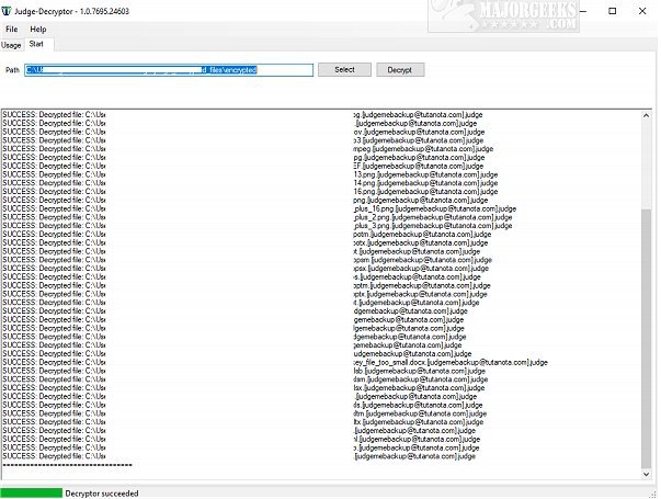 Tesorion Judge Decryptor will help to decrypt files that have been encrypted by the Judge ransomware strain.