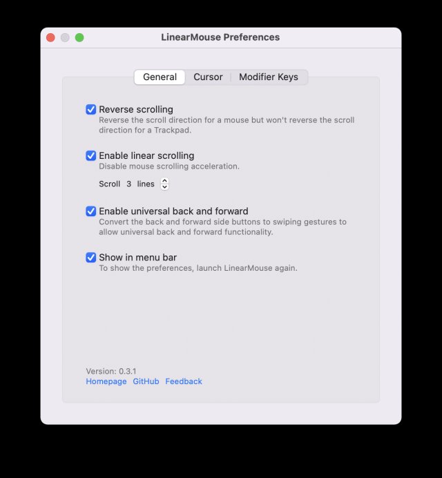 LinearMouse offers macOS users customized scrolling direction, scrolling acceleration, cursor acceleration, and cursor sensitivity. It also makes the back and forward buttons universal.