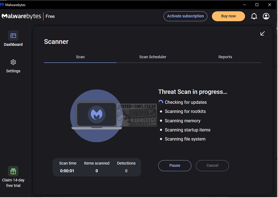 All you have to do is launch Malwarebytes Anti-Malware Free and run a scan. It's that simple. The program will offer up items to remove and clean them with no charge what-so-ever. Or, if you want even better protection, consider upgrading to Malwarebytes Anti-Malware Premium. The premium version will not only handle spyware and malware removal but has some additional options for protection, including an instant real-time scanner that automatically prevents malware and websites from infecting your PC.