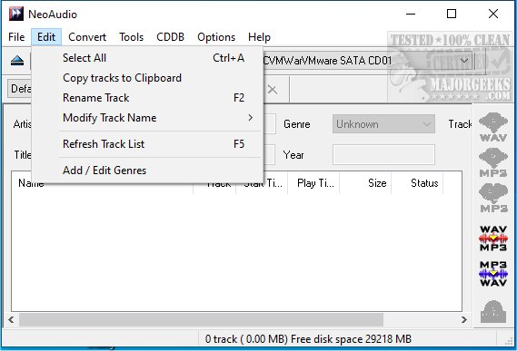 NeoAudio's user interface is easy to use and offers intuitive navigation, making the program accessible even to users with little experience. Additionally, the software has built-in CDDB support, which means it can retrieve track information and album artwork from an online database. This feature saves users time and effort, as they won't need to enter the track information manually.