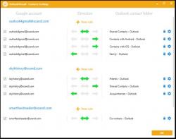 You define the direction of synchronization/update: you can sync or update either the Outlook or the Gmail address book (one-way synchronization) or choose to update both accounts simultaneously (two-way synchronization).