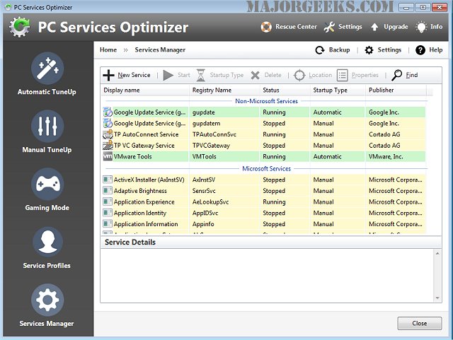 You can choose manual or auto tuneup depending on your comfort level. PC Services Optimizer will quickly tweak dozens of unnecessary Windows services without delving into any technical complexities that make this a great tool for inexperienced users.