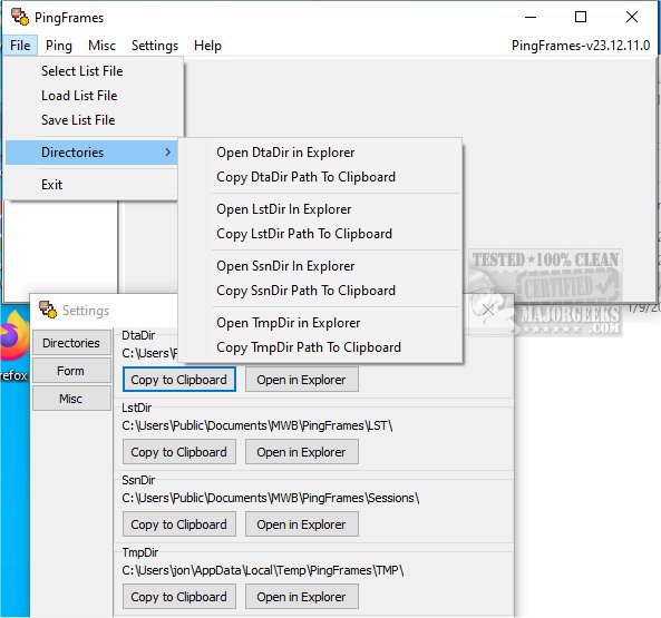 PingFrames does get a hit or two on VirusTotal, and you may get a warning from your antivirus that the file isn't commonly downloaded.