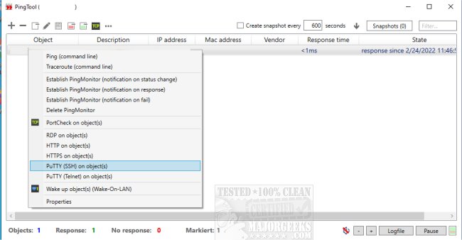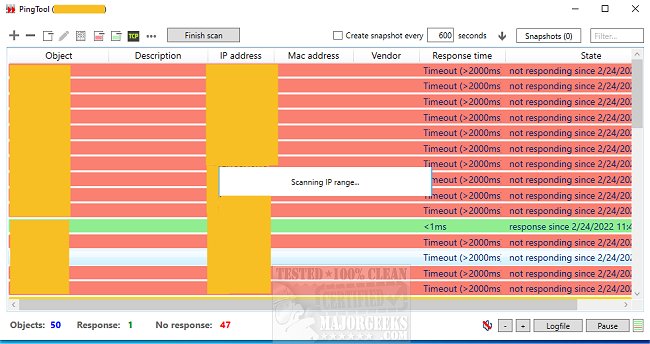 Not only does it allow for ping monitoring, but it can also wake up computers (Wake-on-Lan) and allows for TCP port checking. PingTool will be a valuable addition to your toolbox; it is small and easy to use, allowing for simple deployment. The interface is pretty straightforward and relies on color for specific events, i.e., red for no response green for a response, so you can visualize exactly what is happening at any given time.