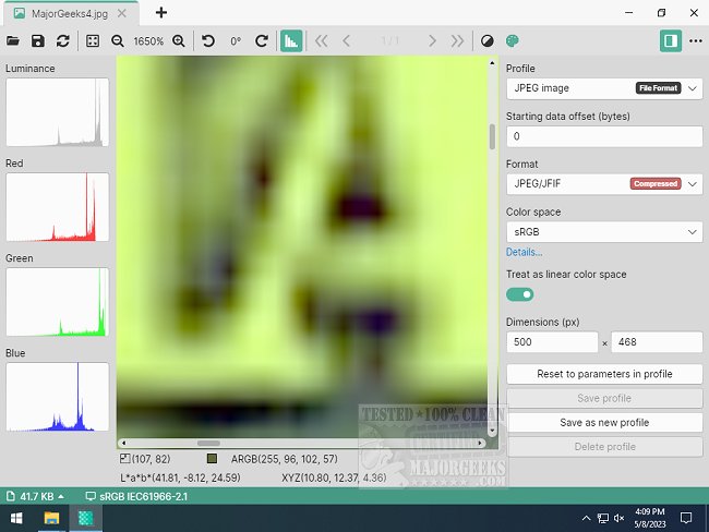 PixelViewer also offers the option to specify the color space of the image and screen, and you can even import an ICC profile as a custom color space. The ability to do so is a valuable feature that can help you create accurate and visually appealing images.