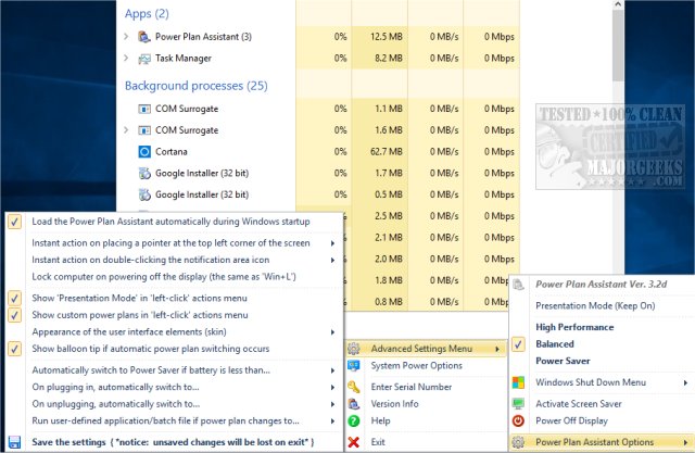Power Plan Assistant is a complete power plan management application. Manage all your power settings, including fast access to high performance, balanced, and power saver modes.