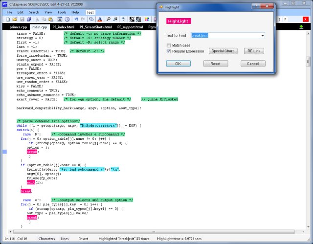 Feature-wise, we could go on forever. Some of the many features include drag-and-drop file loading and text editing, tabbed and sorted-list file selection, hundreds of files open at once, hex viewer for binary files, Find, Find All, Replace, Replace All, regular expressions, column editing, and much, much more.