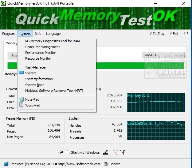 QuickMemoryTestOK can also be utilized for testing your Windows PC for any high memory behavior that may be the cause of other potentially serious system errors.