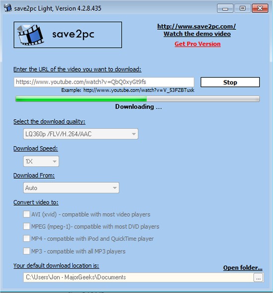 save2pc Light allows you to easily download videos from Youtube, Google, Veoh, Tangle, Vimeo, Myspace Video, Megavideo.com, DailyMotion.com, and more.