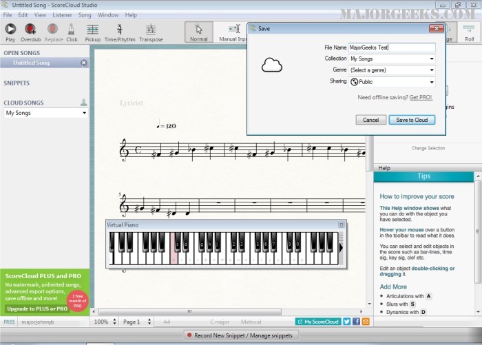 ScoreCloud instantly turns your songs into sheet music, perfect for musicians, students, teachers, choirs and bands as well as composers and arrangers.
