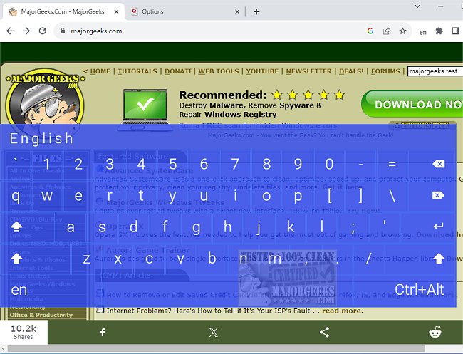 Screen Virtual Keyboard for Chrome will bring up a floating keyboard whenever you open your browser. The keyboard might seem too large and intrusive by default, but you can adjust its size from the options menu. You can change its color scheme and behavior-related settings, such as always on top, sync with a physical keyboard, and more.