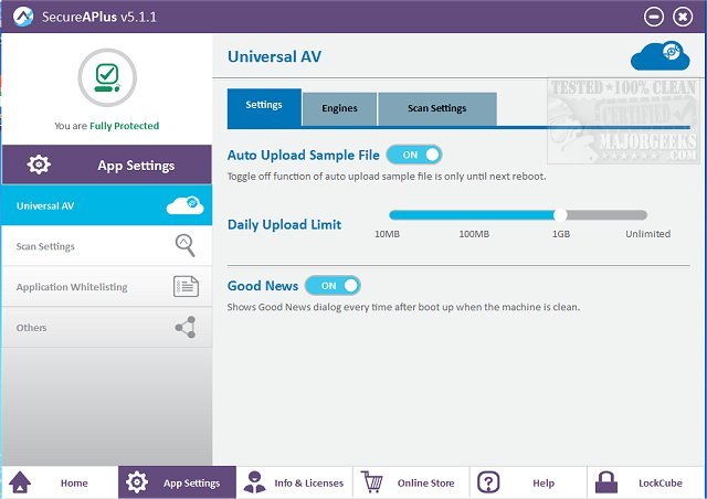 Immediately after you have started SecureAPlus for the first time, it will perform an Initial Full System scan and whitelisting. Upon completion of this one-time process, subsequent Full System Scans with up to 10+ cloud antivirus engines will be fast.