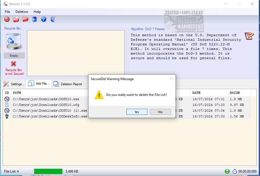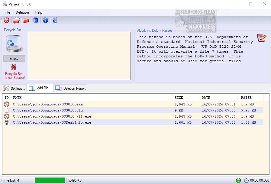 SecureDel streamlines the overwriting process, enabling users to specify the number of repetitions to ensure complete eradication of file data. By utilizing cutting-edge deletion algorithms (DOD, Gutmann, etc.) widely adopted in the developer community, SecureDel offers a comprehensive solution for permanently deleting all file types from your hard drive. These algorithms have undergone rigorous testing and have proven highly effective in rendering data irrecoverable.