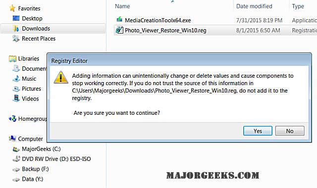 To verify the entries it adds, just right-click on it and open it with notepad, all it does is add associations to Windows Photo Viewer in the registry as it's broken in Windows 10