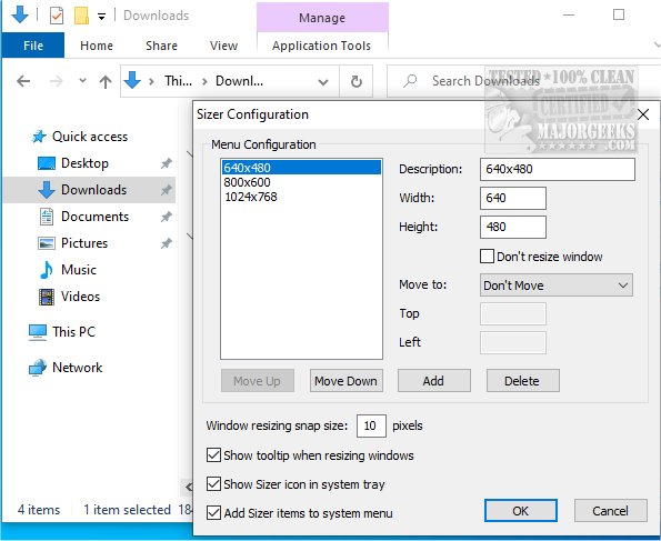 With Sizer, you can easily adjust the dimensions of any window to perfectly fit your needs, whether you're working on a document, browsing the web, or watching a video. You can specify the exact dimensions of the window you want or choose from a list of popular sizes for common applications. Sizer is compatible with all modern versions of Windows and is extremely lightweight and easy to use.