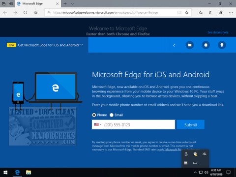 Our second and third screenshots below show Microsoft Edge without, then with the Taskbar.
