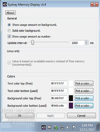 Systray Memory Display is a portable at-a-glance RAM indicator.