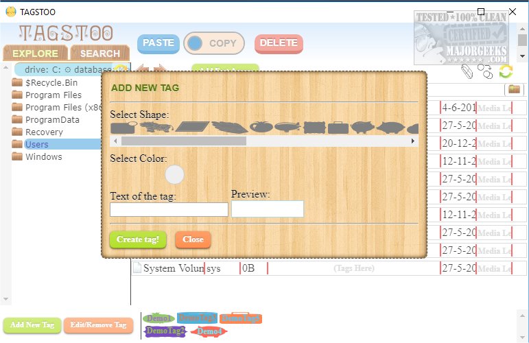 Tagstoo is a unique way to tag files and folders with icons and any text you like.