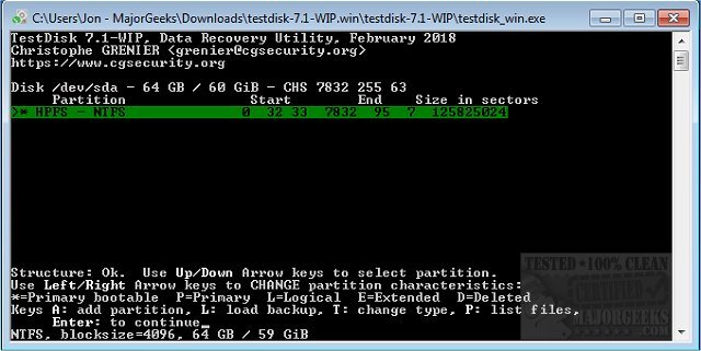 Screenshot for TestDisk