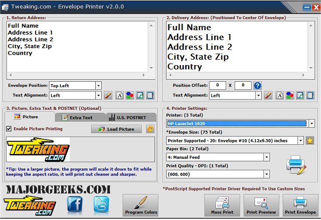 Tweaking.com - Envelope Printer is a program Shane made for himself and decided to put it on Tweaking.com for free and available for everyone.