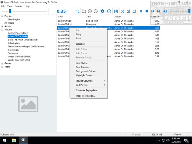 It's easy to add files or folders to a playlist, like iTunes or other audio players. Playlists can be imported or exported in M3U or PLS formats. By default, it will continue to play in order when you play any song. We heard a couple of skips. However, VMware testing can sometimes cause issues that you might not see outside of a virtual machine.