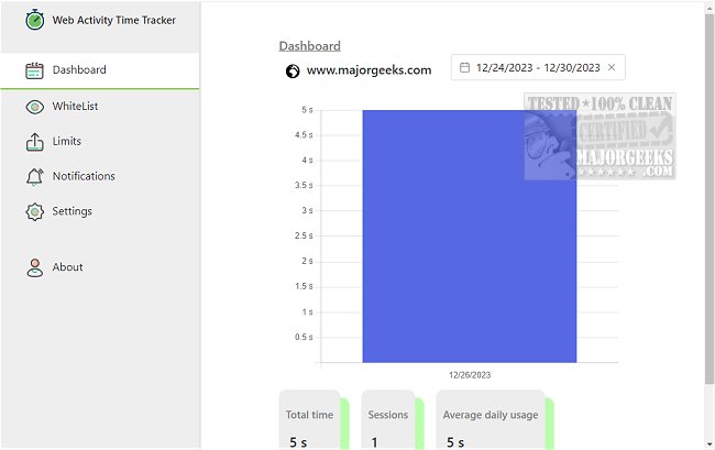 Web Activity Time Tracker keeps track of the total time you've spent browsing today and by days and hours. You can also view usage statistics, compare time spent by day, block distracting websites, and track files like .pdf, .png, .json, and more. Web Activity Time Tracker can also send notifications for websites, provide daily summary notifications, and export data to CSV format.